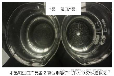 以溶水5分钟后溶液澄清透明为标准,本品的溶解度≥14g/L,优于进口阿莫西林产品。