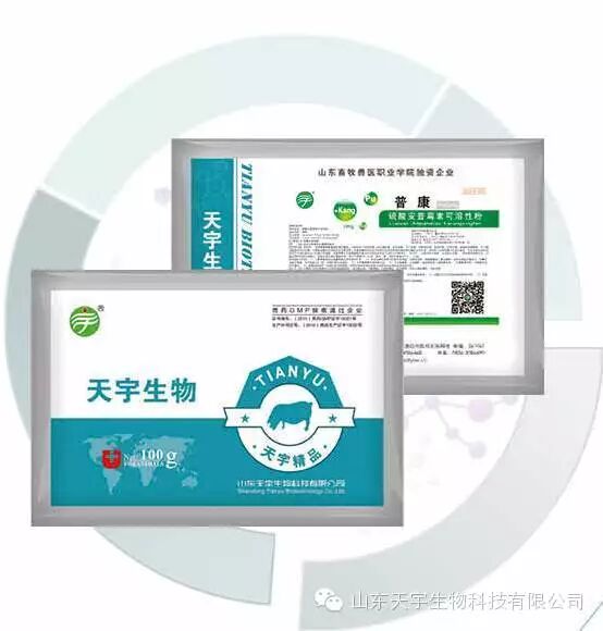 【用法用量】本品100g兑水500-800斤,按全天饮水量计算,可配合抗菌药物单独或混合饮用,连用3-5天。